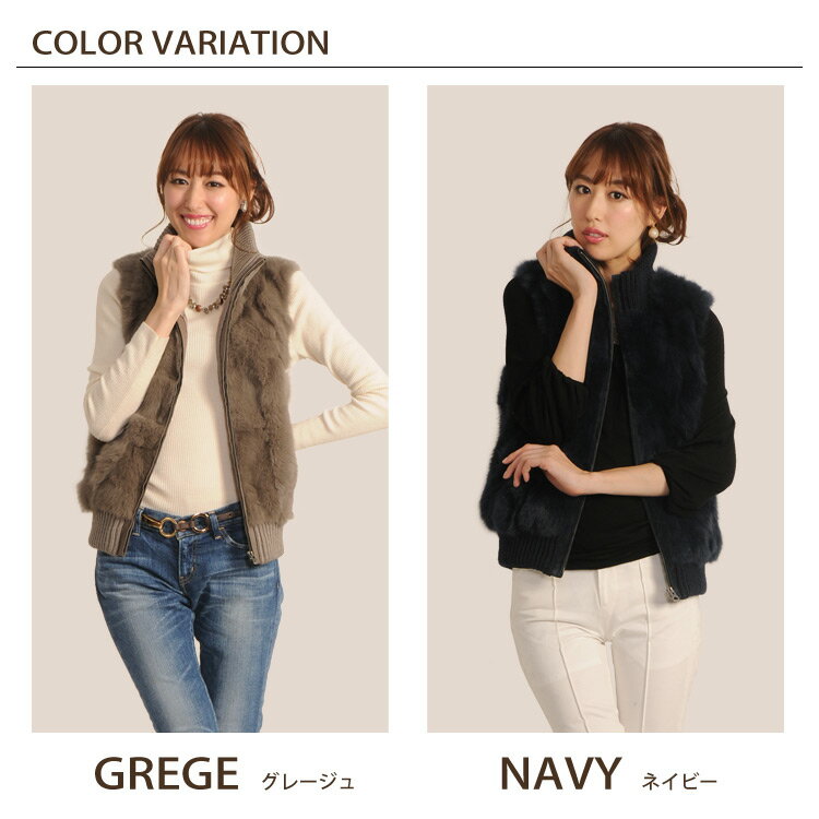 【10%OFFクーポン】ファー ベスト ラビット リブデザイン レディース アウター 毛皮 ニット ジレ 秋 冬 カジュアル ギフト ギフト 母 女性