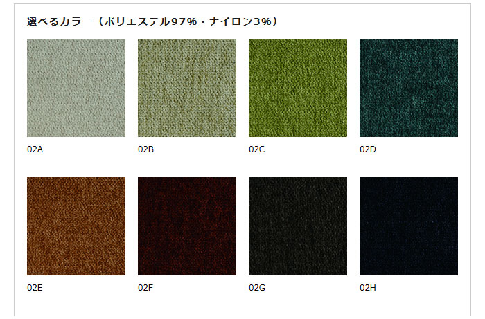 フルカバーリング仕様(※ドライクリーニング)で、ファブリックの色は8色からお選びください。