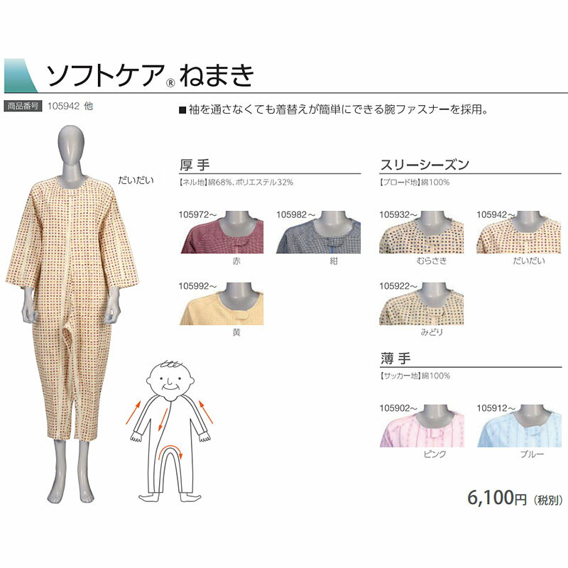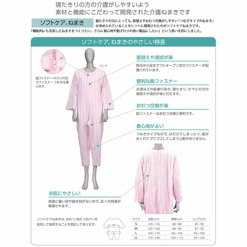 【竹虎 ヒューマンケア】ソフトケアねまき フルオープンタイプ <薄手> / S・M・L・LLサイズ【定番在庫】即日・翌日配送可【介護用品】介護用つなぎ型パジャマ/介護ねまき/寝間着/つなぎ服/寝たきり【通販】