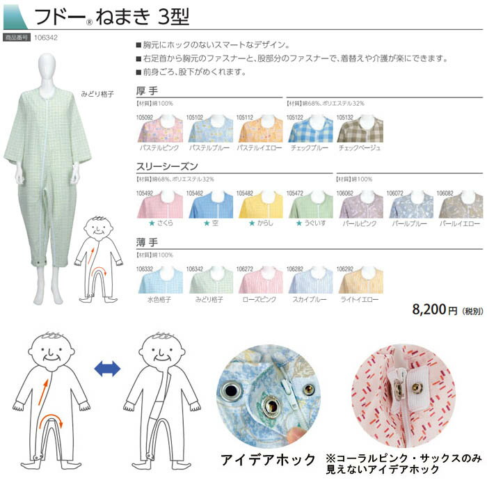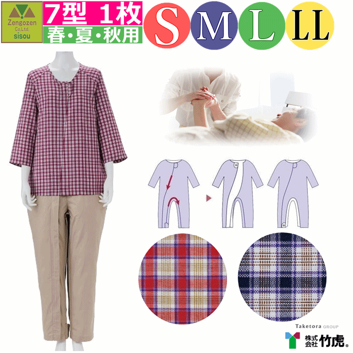 (お買い物マラソン 全品ポイント5倍!!)竹虎 介護用パジャマ フドーねまき6型 スリーシーズン用(春夏秋用 介護用つなぎ服 上下続き服 寝巻 いたずら防止ホック付)介護用品