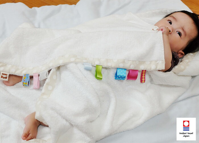 今治タオル認定番号第2015-305号 商品パウダーにぎにぎタオル フード付きバスタオル 素材綿100% サイズ約60×120cm(*タグ・フードの部分は除く) カラーホワイト・ブルー・ピンク今治タオルの柔らかな肌ざわりと、かわいいラベルがひとつになった「にぎにぎ」の淡い色のシリーズが加わりました。