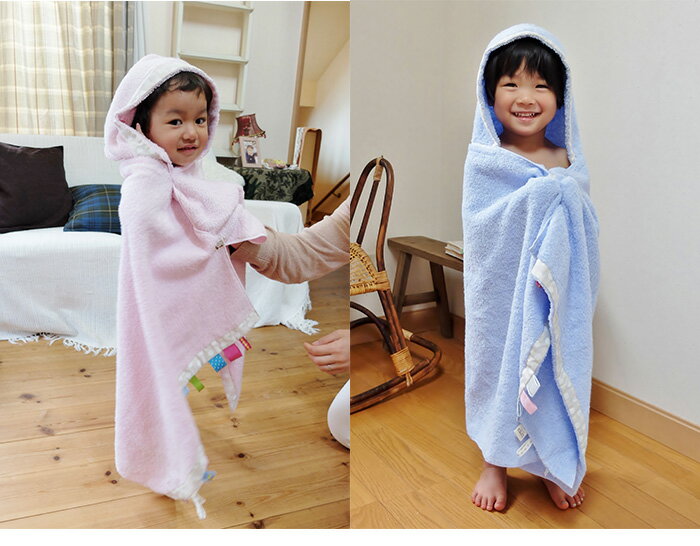 今治タオル認定番号 第2015-305号 商品 パウダーにぎにぎタオル フード付きバスタオル 素材 綿100% サイズ 約60×120cm(*タグ・フードの部分は除く) カラー ホワイト・ブルー・ピンク ※お客様のご覧になっているモニター(スマートフォン液晶)設定等により、色の見え方が実物と多少異なる場合がございます。