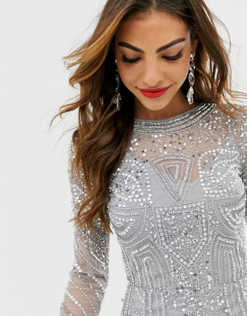 フロック レディース ワンピース トップス Frock & Frill long sleeve high embellished maxi dress Grey/silver