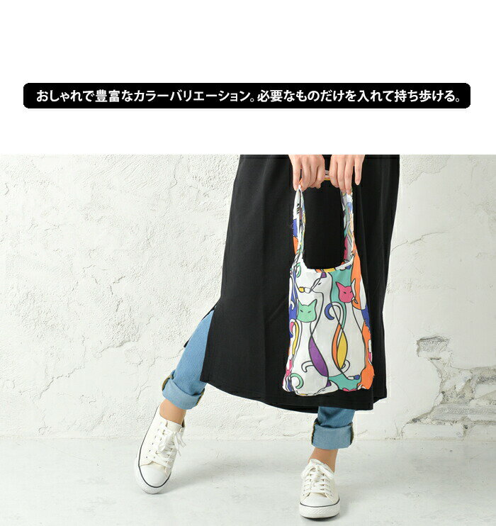 メール便送料無料 プリント エコバッグ ミニデザイナーズ エコバック 折りたたみ おしゃれ かわいい コンビニ コンパクト 鞄 カバン ショルダー ナイロン トートバッグ サブバッグ ネコ 猫 トラ 虎 プレゼント ギフト ポイント10倍母の日